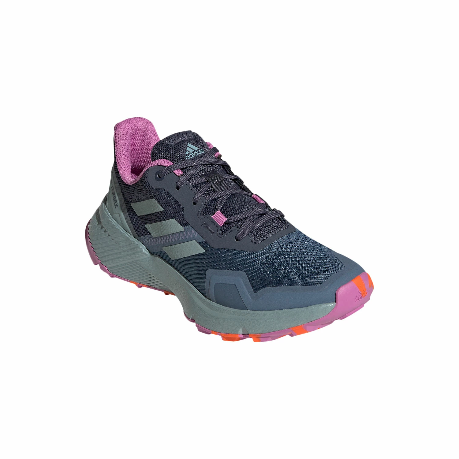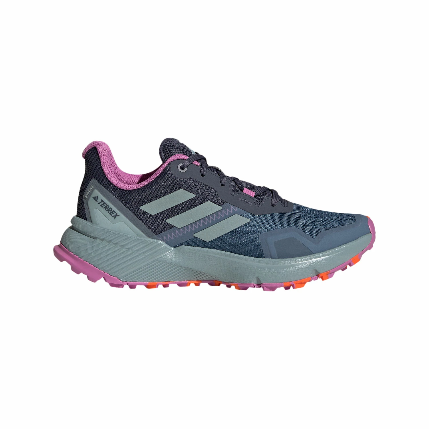 Extend your range in these adidas Terrex trail running shoes. Their cushioned midsole and pillow-like heel cushioning add up to all-day comfort step after step. A hybrid lug sole transitions easily between road and trail. Raised sidewalls complement the engineered mesh upper to add stability for confident footing, no matter where the trail takes you.