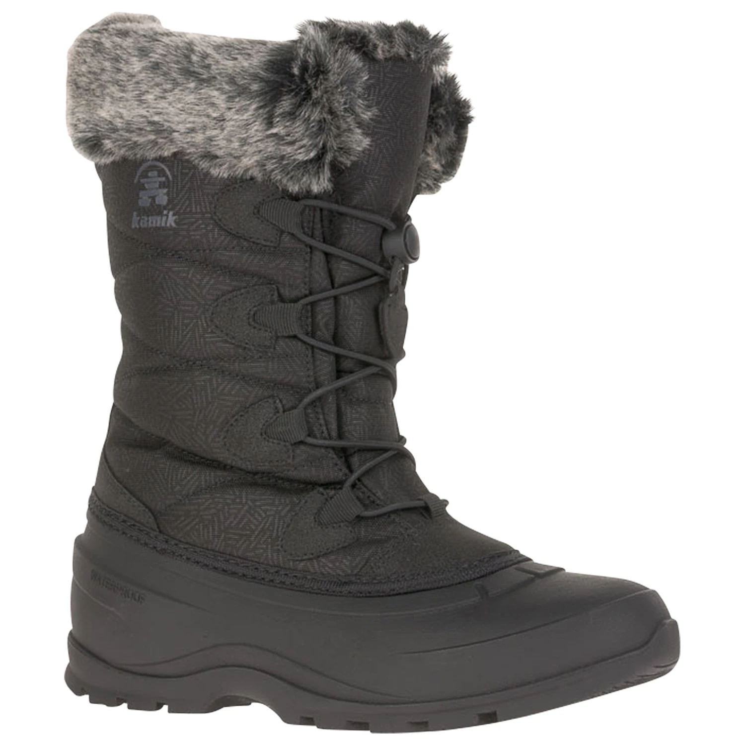 Seam-sealed waterproof nylon upper with faux fur snow collar and gusset tongue